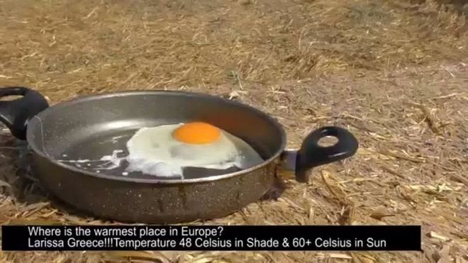 Στο παρακάτω βίντεο, ο ίδιος αναφέρει ότι η θερμοκρασία κάτω από τον καυτό ήλιο φτάνει μέχρι και τους 60 βαθμούς κελσίου. Στα πλάνα ο ίδιος τοποθετεί ένα τηγάνι στο έδαφος, προσθέτει λίγο λάδι και σπάει το αυγό το οποίο στη συνέχεια τηγανίζεται σχεδόν σαν να είναι τοποθετημένο σε μάτι κουζίνας.