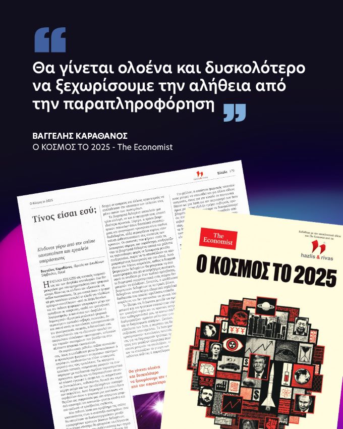Κωστής Χατζηδάκης, Χρήστος Σταϊκούρας, Μελίνα Τραυλού και Ελένη Βρεττού, που επιλέχθηκαν φέτος για να αρθρογραφήσουν στη ετήσια έκδοση του Economist “Ο κόσμος το 2025”, βρίσκεται ο Τρικαλινός ΒαγγέληςΚαραθάνος.