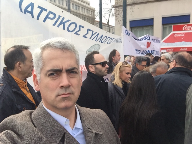 Στις φωτο ο κ. Λιάπης εικονίζεται στην κεφαλή της πορείας με τον Πρόεδρο του Πανελληνίου Ιατρικού Συλλόγου κ. Βλασταράκο και τον Πρόεδρο του Φαρμακευτικού Συλλόγου Αττικής κ. Λουράντο.