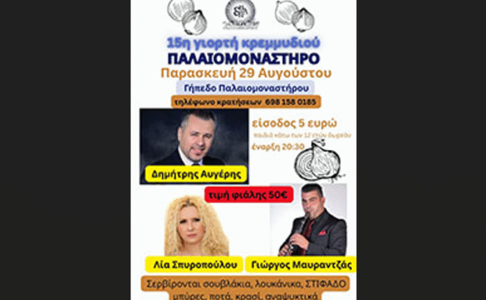 Την μεθεπόμενη Παρασκευή 29 Αυγούστου 2025, ο Σύλλογος Γυναικών Παλαιομοναστήρου, διοργανώνει για 15η φορά, την περίφημη “Γιορτή Κρεμμυδιού”, στο γήπεδο του χωριού.