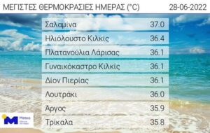 Υψηλή θερμοκρσία καταγράφηκεκαι ι σήμερα Τρίτη 28 Ιουνίου στα Τρίκαλα,