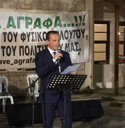 Χαιρετίζω από το βήμα αυτό, το σύνολο των Αγραφιωτών, οι οποίοι διαχρονικά, από όπου και εάν βρίσκονται, έχουν τιμήσει και τιμούν τον τόπο τους και την πατρίδα μας.”