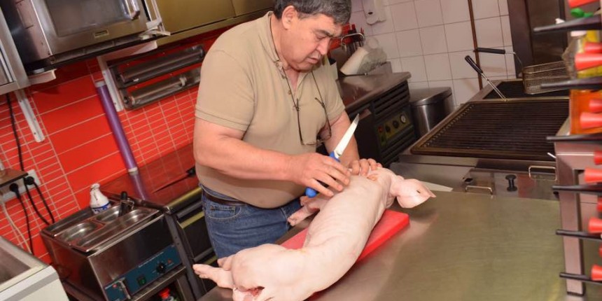 Στο έθιμο της γουρνοχαράς βάλθηκε να μυήσει τους Ολλανδούς Τρικαλινός εστιάτορας