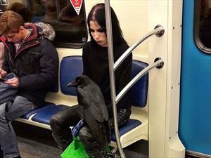 Viral έγινε μια φωτογραφία από το μετρό της Μόσχας, που δείχνει μια κοπέλα με γκοθικ στυλ να κάθεται σε μια θέση, έχοντας στο πόδι της ένα… κοράκι.