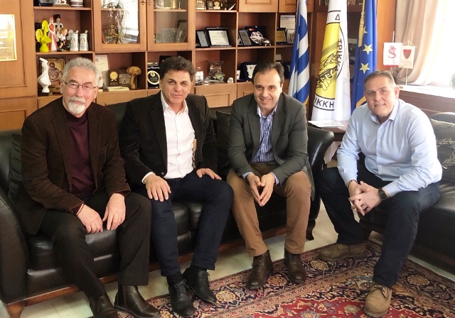 Επίσκεψη γνωριμίας στον Δήμαρχο Τρικκαίων, πραγματοποίησε ο νέος αντιπεριφερειάρχης Εμπορίου της Περιφέρειας Θεσσαλίας κ. Χρ. Γακόπουλος. Ο τρικαλινός αντιπεριφερειάρχης ανέλαβε προ ημερών το νέο του αξίωμα και με τον κ. Δημήτρη Παπαστεργίου συζήτησαν θέματα άμεσης αρμοδιότητάς του. Ο Δήμαρχος Τρικκαίων ευχήθηκε την καλή θητεία στον κ. Γακόπουλο, τονίζοντας τη σημασία της συνεργασίας για θέματα εμπορίου. Παρόντος, εξάλλου, του προέδρου του Δημοτικού Συμβουλίου Τρικκαίων κ . Μιχ. Λάππα και του αντιπροέδρου του συλλόγου συνταξιούχων ΟΑΕΕ κ. Βήτα, συζητήθηκαν και ειδικότερα θέματα για την ασφάλιση.