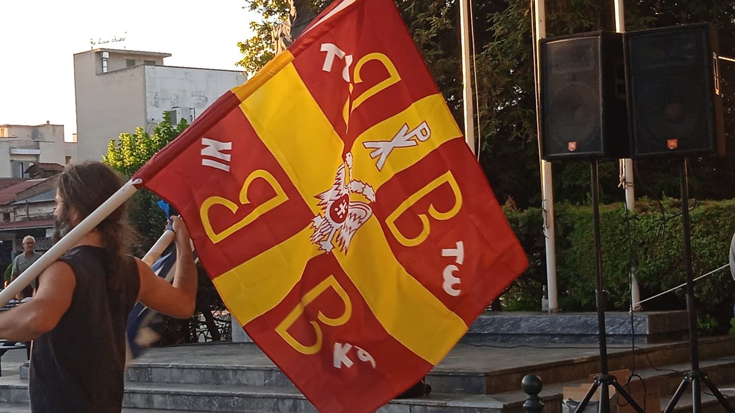 Οι συγκεντρωθέντες με ενα πανό με κεντρικό σύνθημα “οχι υποχρεωτικότητα εμβολιασμών Οχι διακρίσεις και διαχωρισμούς. Οχι ανεργία. Παιδεία Δουλειά Ελευθερία” διαμαρτυρηθηκαν για την απόφαση της κυβέρνησης να καταστεί υποχρεωτικός ο εμβολιασμός σε κατηγορίες εργαζομένων