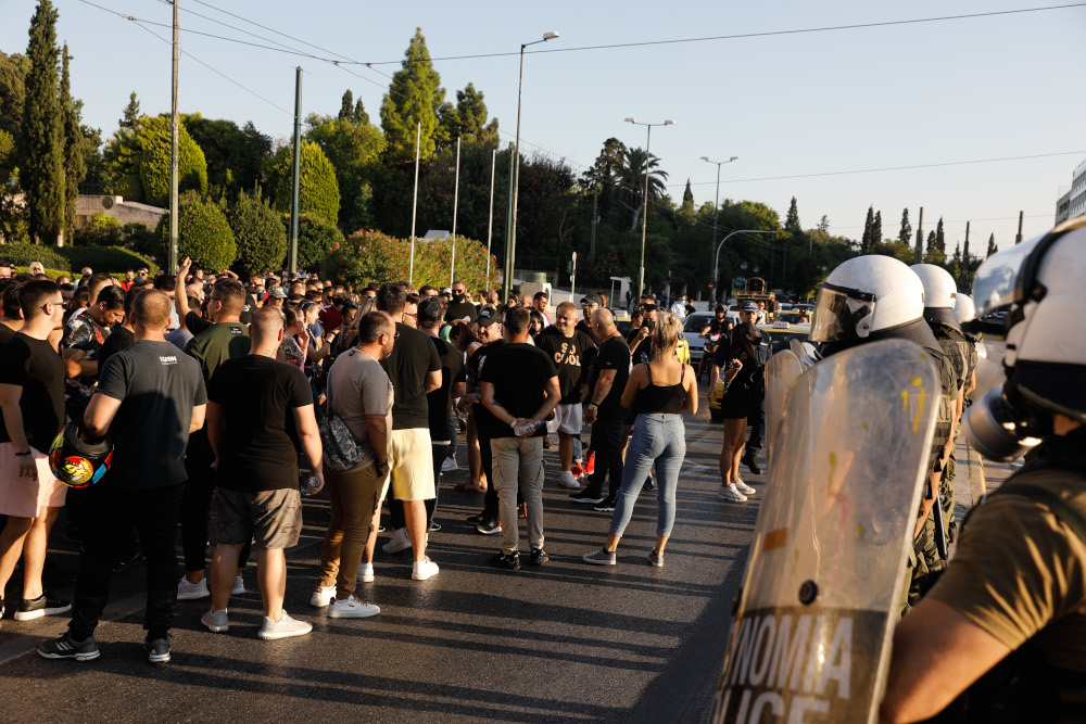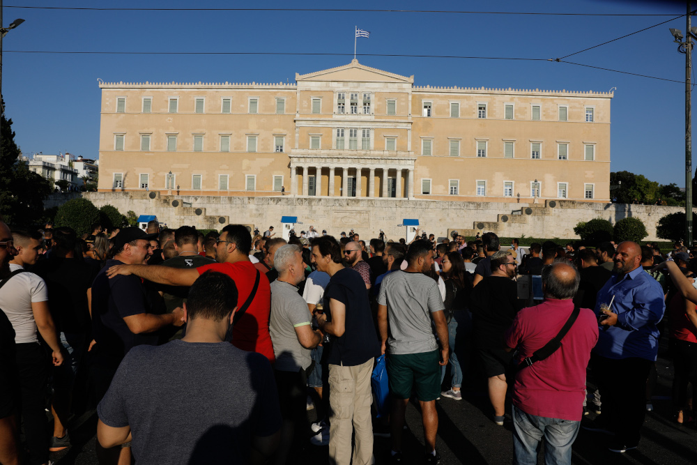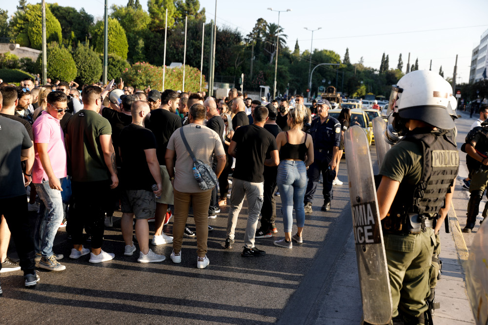 Πλήθος εργαζομένων του κλάδου εστίασης πραγματοποίησε διαμαρτυρία στο κέντρο της Αθήνας για τα μέτρα που έλαβε η κυβέρνηση για τα νυχτερινά μαγαζιά