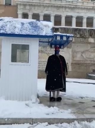 Πιστοί στο καθήκον τους , κάτω από οποιεσδήποτε καιρικές συνθήκες , οι Εύζωνες, φύλακες του Μνημείου του Άγνωστου Στρατιώτη και
