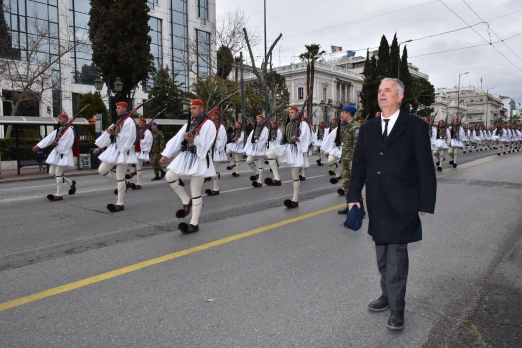 Όπως φαίνεται στις εικόνες που παραχώρησε στο in.gr ο φωτογράφος της Προεδρικής Φρουράς, Παντελής Ξύστρος, ο κύριος Χρήστος παρήλασε και ο ίδιος δίπλα στους Εύζωνες.