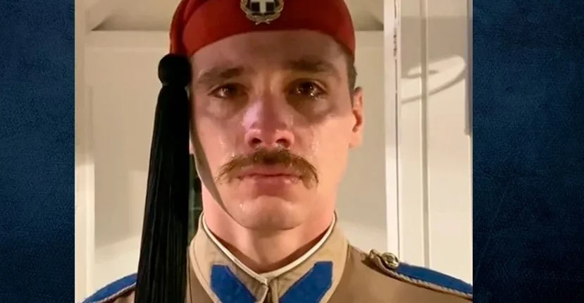 Σε βίντεο που ανέβασε στο TikTok η αδελφή του Γιώργου- όπως ονομάζεται ο Εύζωνας- φαίνεται ο ίδιος να κλαίει.