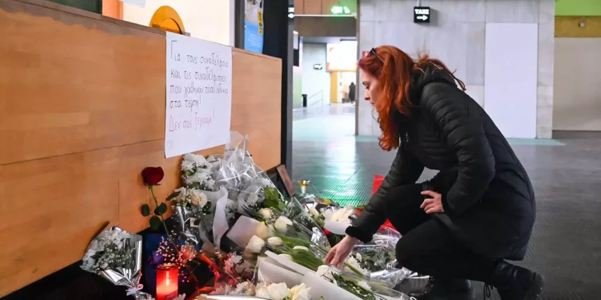 Η είσοδος των γραφείων του ΟΣΕ έχει γεμίσει με λουλούδια και γράμματα με μηνύματα για όσους χάθηκαν μα και για εκείνους που αγνοούνται ακόμα από τη μοιραία σύγκρουση των δυο τρένων στα Τέμπη.