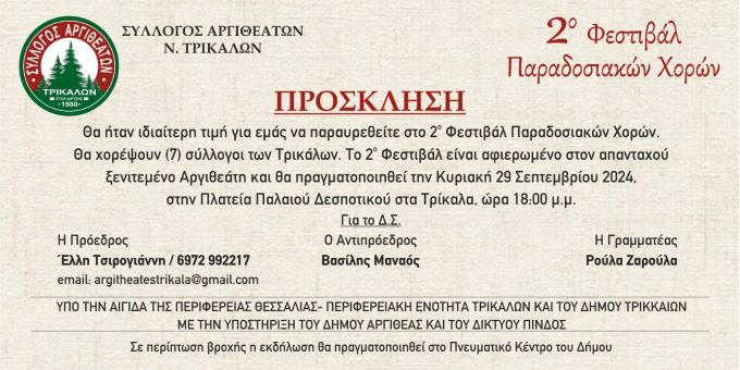 Ο Σύλλογος Αργιθεατών Τρικάλων γνήσιος εκφραστής του Λαϊκού μας