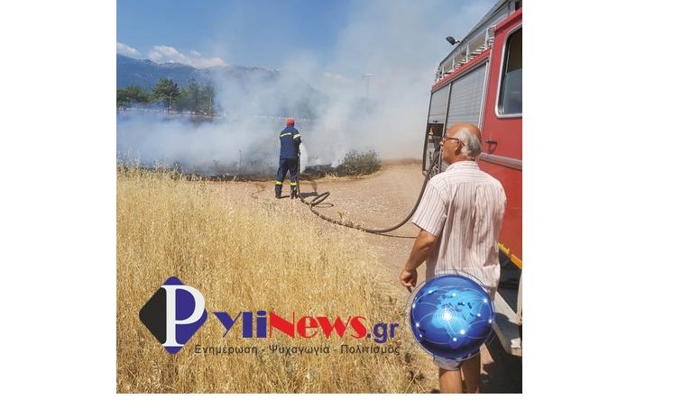 Η φωτιά, όπως διαβάζουμε στο pylinews, ξεκίνησε από το σημείο όπου βρίσκεται πομώνα του ΤΟΕΒ Γόμφων, πίσω ακριβώς από το γήπεδο ποδοσφαίρου του χωριού και έχοντας κατεύθυνση βορειοδυτική, εκινείτο απειλητικά προς το παρακείμενο δασύλλιο, που χάρη στην έγκαιρη επέμβαση του ΠΚ Πύλης, που προσέτρεξε στο σημείο με δύναμη τριών ανδρών & ένα πυροσβεστικό όχημα, με συντονιστή κατάσβεσης τον αναπληρωτή Προϊστάμενο κ. Γεώρ. Καραχάλιο, αποφεύχθησαν τα χειρότερα.