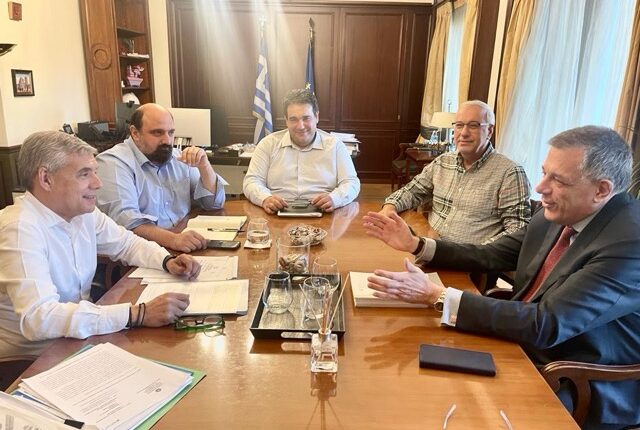 Συνάντηση εργασίας εφ΄όλης της ύλης σχετικά με την αντιπλημμυρική προστασία και την πορεία των έργων στη Θεσσαλία πραγματοποιήθηκε στο Υπουργείο Εσωτερικών, μεταξύ του Περιφερειάρχη Θεσσαλίας Κώστα Αγοραστού, του αναπληρωτή Υπουργού Εσωτερικών Θεοδώρου Λιβάνιου, του υφυπουργού Υποδομών Νίκου Ταχιάου, του υφυπουργού Κλιματικής Κρίσης και Πολιτικής Προστασίας Χρήστου Τριαντοπούλου και του Γενικού Γραμματέα του ΥΠΕΣ Μιχάλη Σταυριανουδάκη.