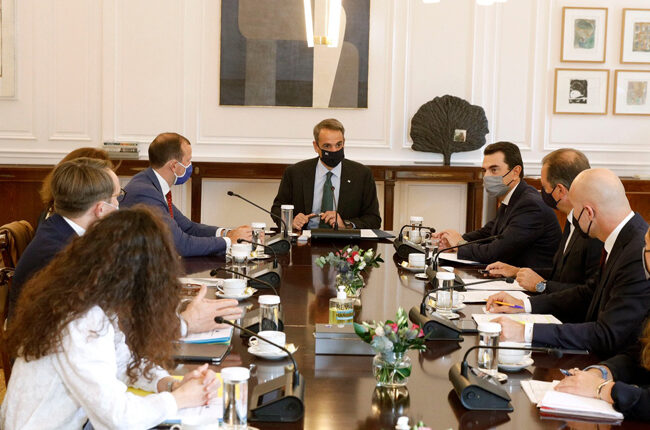 Για τα σχέδια της Κυβέρνησης σχετικά με την αντιμετώπιση της κλιματικής κρίσης συζήτησαν ο Υπουργός Περιβάλλοντος και Ενέργειας, Κώστας Σκρέκας, με τον Πρωθυπουργό, Κυριάκο Μητσοτάκη, και τον Ευρωπαίο Επίτροπο για το Περιβάλλον, Βιργκίνιους Σινκέβιτσους, στο Μέγαρο Μαξίμου.