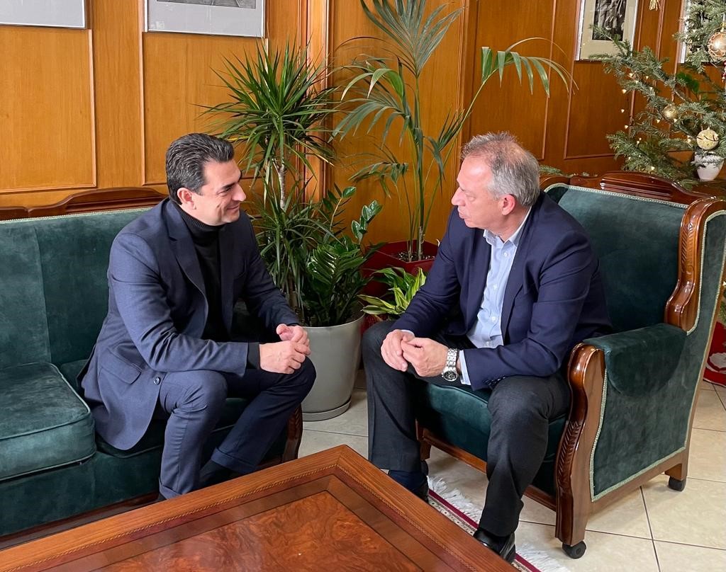 Οι δύο άνδρες συζήτησαν θέματα σχετικά με μεγάλα έργα υποδομών που έχουν ισχυρό αναπτυξιακό πρόσημο καθώς και για τις ευκαιρίες που παρουσιάζονται για περαιτέρω ανάπτυξη του νομού Τρικάλων στον αγροτικό, τουριστικό και μεταποιητικό τομέα.