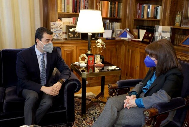 Ο Υπουργός Περιβάλλοντος και Ενέργειας, Κώστας Σκρέκας, συναντήθηκε με την Πρόεδρο της Δημοκρατίας, Κατερίνα Σακελλαροπούλου, στο Προεδρικό Μέγαρο.