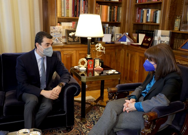 Ο Υπουργός Περιβάλλοντος και Ενέργειας, Κώστας Σκρέκας, συναντήθηκε με την Πρόεδρο της Δημοκρατίας, Κατερίνα Σακελλαροπούλου, στο Προεδρικό Μέγαρο.