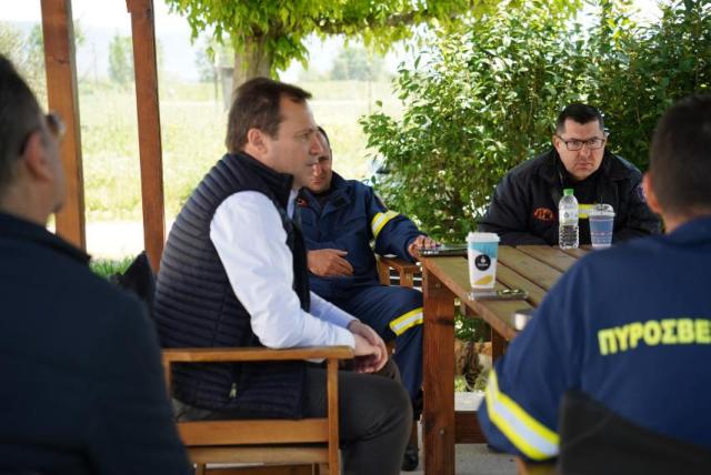 Πυροσβεστικό Κλιμάκιο Οιχαλίας. Στο κλιμάκιο τον υποδέχτηκε ο Προϊστάμενος,