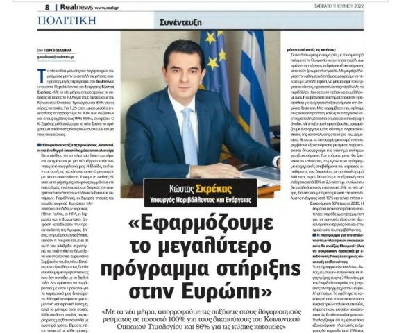 προϋπολογισμό 640 εκατ. ευρώ. Στοχεύουμε σε εξοικονόμηση ενέργειας κατά