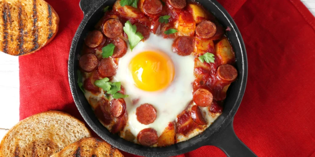 Πρόκειται για έναν ακαταμάχητο συνδυασμό γεύσεων, που δεν μπορεί να πάει λάθος. Αν, όμως, θέλεις μια πιο ελαφριά παραλλαγή του αγαπημένου πιάτου μπορείς να το μαγειρέψεις στο φούρνο, αναμειγνύοντας με άλλα υλικά της επιλογής σου και προσθέτοντας τα αυγά στο τέλος, όταν τα λουκάνικα και οι πατάτες έχουν ήδη ψηθεί. Ουσιαστικά, δεν τηγανίζεις κάτι στο λάδι, οπότε είναι σίγουρα μια πιο light συνταγή με χαμηλότερα λιπαρά και την απολαμβάνεις χωρίς τύψεις.