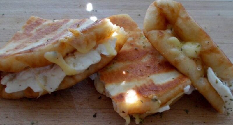 - Ψήνουμε την μια πλευρά μέχρι να λιώσουν τα τυριά και στη συνέχεια κάνουμε το ίδιο και από την άλλη μεριά για να ροδίσει.