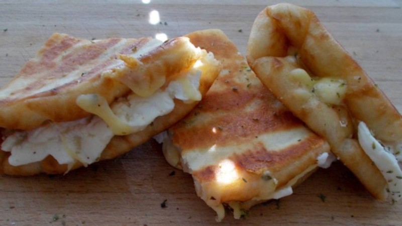 - Ψήνουμε την μια πλευρά μέχρι να λιώσουν τα τυριά και στη συνέχεια κάνουμε το ίδιο και από την άλλη μεριά για να ροδίσει.