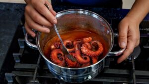 - Πλένουμε και καθαρίζουμε το χταπόδι.