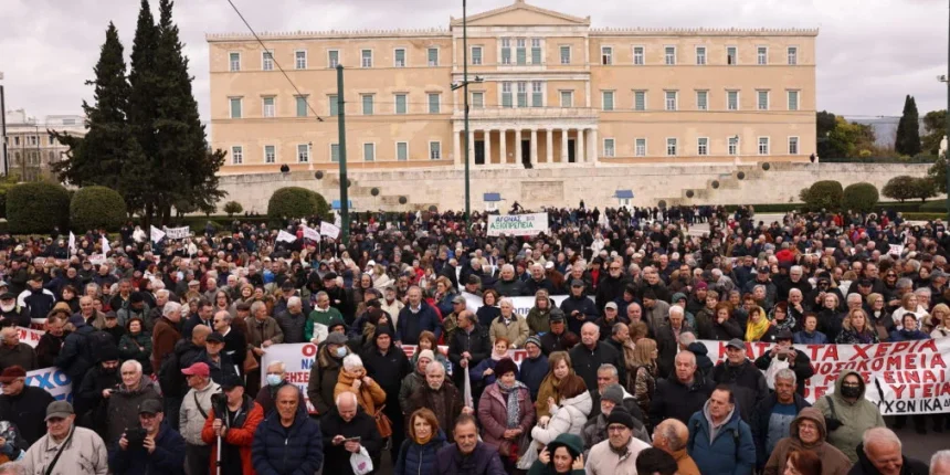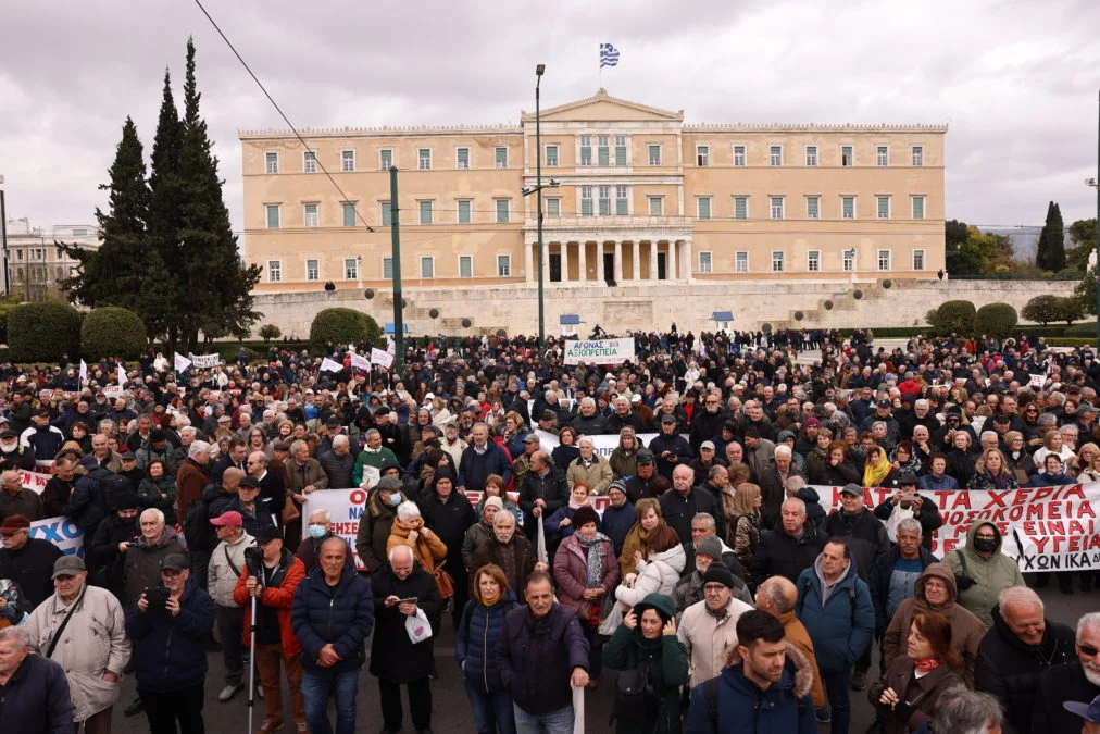 Σε εξέλιξη βρίσκεται συγκέντρωση διαμαρτυρίας στην πλατεία Συντάγματος από συνταξιούχους, οι οποίοι στην συνέχεια πραγματοποίησαν πορεία προς το Μέγαρο Μαξίμου.