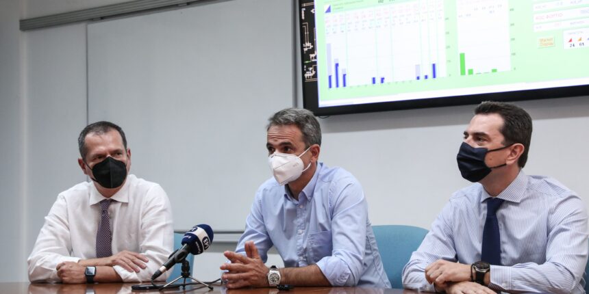 Σύσκεψη με τον υπουργό Περιβάλλοντος και Ενέργειας Κώστα Σκρέκα, διοικητικά στελέχη του ΑΔΜΗΕ, του ΔΕΔΔΗΕ και παραγωγούς ηλεκτρικής ενέργειας είχε το πρωί ο Πρωθυπουργός Κυριάκος Μητσοτάκης στο Εθνικό Κέντρο Ελέγχου Ενέργειας.