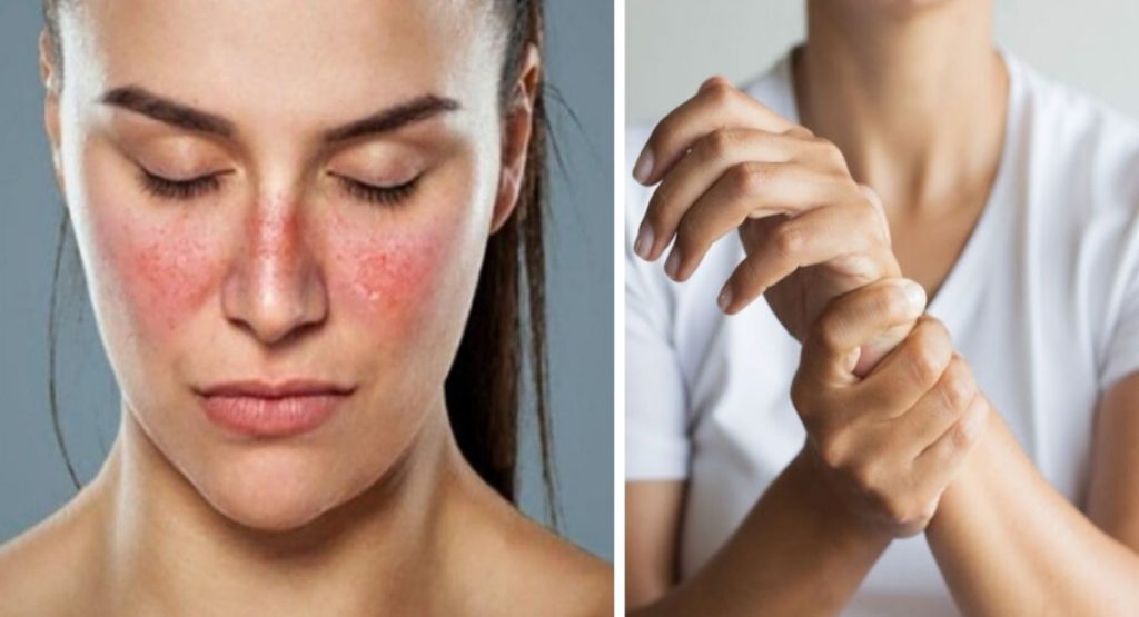 • Εξάνθημα σε μέρη του σώματος που εκτίθενται στον ήλιο – πολύ κοινή είναι η εμφάνιση εξανθήματος σε σχήμα πεταλούδας στα μάγουλα και τη μύτη