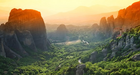 Τα Μετέωρα ορθώνονται σαν γίγαντες μπροστά στα μάτια των ταξιδιωτών και υπόσχονται να τους μαγέψουν με το απόκοσμο τοπίο τους και το αξέχαστο ηλιοβασίλεμα τους, παρά το γεγονός ότι αυτός ο ήλιος δεν χάνεται στα νερά κάποιας θάλασσας, όπως συμβαίνει με τα νησιά. Ιδανικό σκηνικό, σαν να είναι βγαλμένο από ταινία εμπνέει τους λάτρεις της φωτογραφίας και αξίζει μια επίσκεψη.