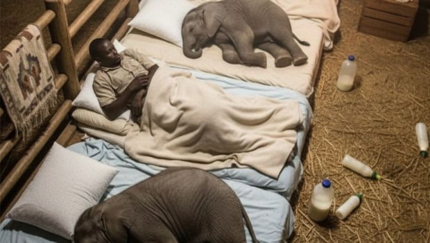 Όπως εξηγεί η οργάνωση, μόλις πέφτει η νύχτα, τα ελεφαντάκια είχαν συνηθίσει να κάθονται δίπλα από τη μαμά τους που τα προστάτευε. Όσα έμειναν ορφανά, μπορεί το βράδυ να κλαίνε και να είναι ανήσυχα, ψάχνοντας να ακουμπήσουν με την προβοσκίδα το πρόσωπο αναφοράς. Οι φροντιστές του Sheldrick Wildlife Trust μένουν στο πλευρό τους όλη τη νύχτα, μιλώντας τους και αγγίζοντας απαλά τα μέτωπά τους όπως ακριβώς η μαμά τους.
