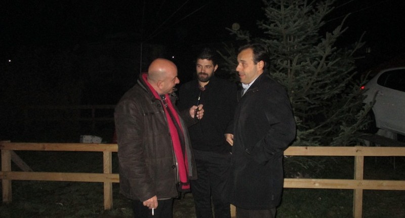 Στη φωτό ο δήμαρχος Δημ. Παπαστεργίου με τον πρόεδρο και τον διευθύνοντα σύμβουλο της e-trikala Χριστόφορο Ρόμπο και Οδυσσέα Ράπτης αντίστοιχα, λίγο πριν την έναρξη της τελετής λήξης του «μύλου των ξωτικών»