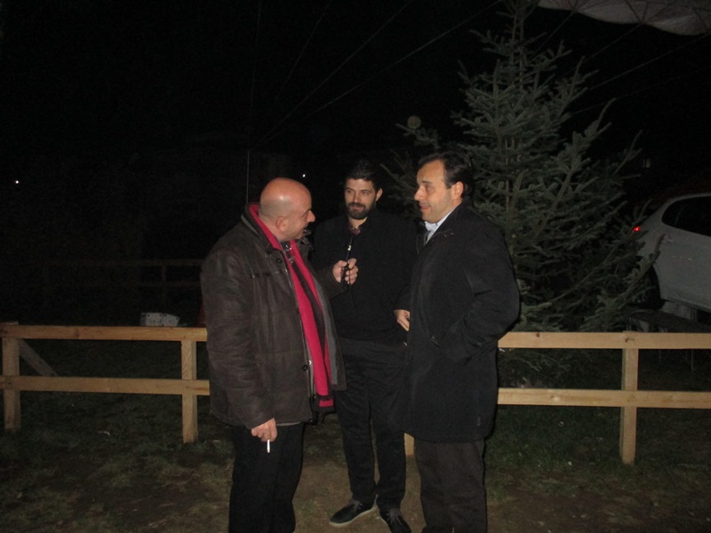 Στη φωτό ο δήμαρχος Δημ. Παπαστεργίου με τον πρόεδρο και τον διευθύνοντα σύμβουλο της e-trikala Χριστόφορο Ρόμπο και Οδυσσέα Ράπτης αντίστοιχα, λίγο πριν την έναρξη της τελετής λήξης του «μύλου των ξωτικών»