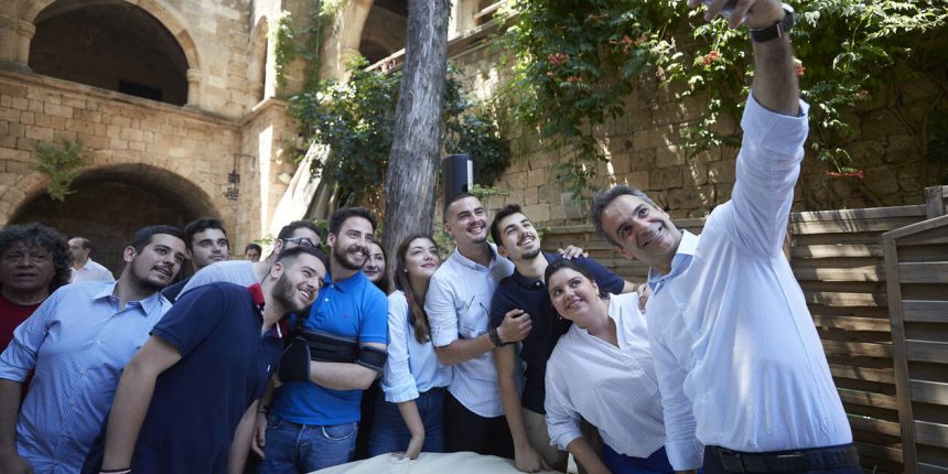 Ο Κυριάκος Μητσοτάκης όχι μόνο δέχθηκε – όπως πάντα άλλωστε- να βγάλει selfies με τους νέους που τον πλησίασαν αλλά για μία από αυτές ανέλαβε να την τραβήξει κιόλας εκμεταλλευόμενος το ύψος του, ώστε να μπουν όλοι στο «κάδρο».