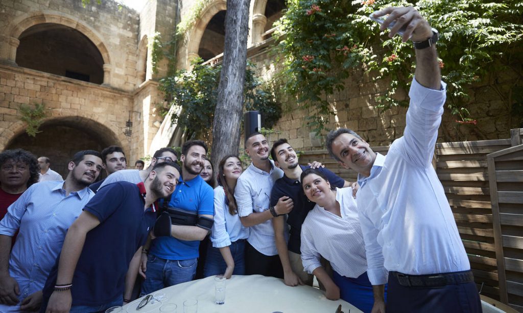 Ο Κυριάκος Μητσοτάκης όχι μόνο δέχθηκε – όπως πάντα άλλωστε- να βγάλει selfies με τους νέους που τον πλησίασαν αλλά για μία από αυτές ανέλαβε να την τραβήξει κιόλας εκμεταλλευόμενος το ύψος του, ώστε να μπουν όλοι στο «κάδρο».