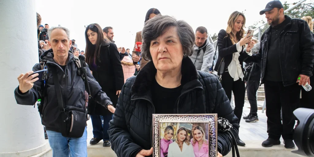 Η γιαγιά της Θώμης, της Χρύσας και της Αναστασίας, κρατώντας μια κορνίζα με τις φωτογραφίες των κοριτσιών της, βρέθηκε στο δικαστήριο, εμφανώς συγκινημένη.