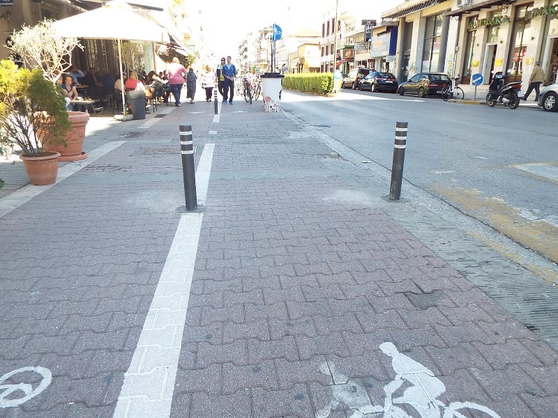 Συνεχίζει την απελευθέρωση των ποδηλατοδρόμων ο Δήμος Τρικκαίων. Σήμερα ολοκληρώθηκαν οι παρεμβάσεις στον ποδηλατοδρόμο της οδού Κονδύλη, με αποτέλεσμα να χρησιμοποιείται και αυτός κανονικά πλέον από τους ποδηλάτες. Οι παρεμβάσεις αυτές αφορούσαν στην τοποθέτηση εμποδίων (κολωνάκια) στις διασταυρώσεις του ποδηλατοδρόμου με τις κάθετες στην Κονδύλη οδούς. Ετσι, αποτρέπεται οριστικά η παράνομη στάθμευση οχημάτων κάθε είδους επάνω στον ποδηλατόδρομο και αυτός χρησιμοποιείται πια από τους κανονικούς του χρήστες, τους χιλιάδες τρικαλινούς ποδηλάτες. Ταυτοχρόνως, έγινε και διαγράμμιση στον ίδιο ποδηλατόδρομο, χωρίζοντάς τον στις δύο λωρίδες κυκλοφορίας του, όπως προβλέπεται. Υπενθυμίζεται ότι η κόκκινη διαγράμμιση στην οδό Κονδύλη αφορά στα ποδήλατα, ενώ όλος ο υπόλοιπος χώρος είναι πεζοδρόμιο και όχι πεζόδρομος, όπως έχει θεωρηθεί ότι είναι. Αυτό σημαίνει ότι ισχύουν και σε αυτό το σημείο οι διατάξεις για τα πεζοδρόμια, με βάση την Κανονιστική Διάταξη για τους κοινόχρηστους χώρους.