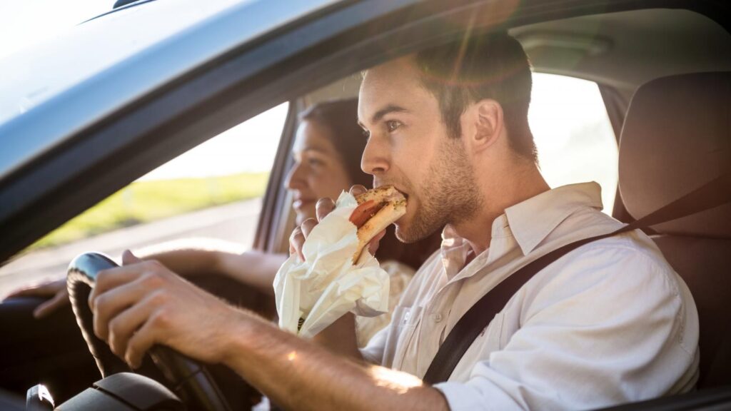 Η απόσπαση της προσοχής ενός οδηγού, ακόμα και όταν αυτή οφείλεται στην κατανάλωση φαγητού, τιμωρείται και μάλιστα αυστηρά από τον Κώδικα Οδικής Κυκλοφορίας.