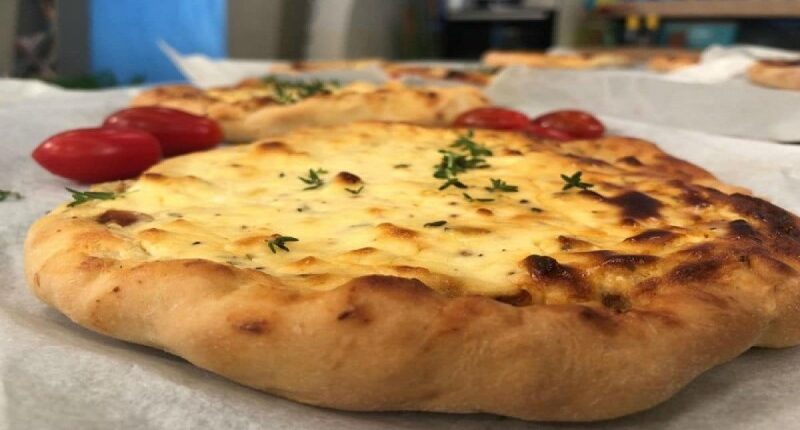 - Σε έναν αλευρωμένο και καθαρό πάγκο, με ένα πλάστη, ανοίγουμε την κάθε μπάλα σε στρογγυλό σχήμα πάχους μισού εκατοστού.