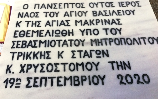 Η τελετή πραγματοποιήθηκε το πρωί του Σαββάτου 19 Σεπτεμβρίου 2020, χοροστατούντος του Σεβασμιώτατου Μητροπολίτη Τρίκκης και Σταγών κ. Χρυσόστομου, παρόντος του Δημάρχου Τρικκαίων και προέδρου της ΚΕΔΕ, Δημήτρη Παπαστεργίου.