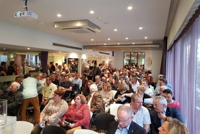 Μέσα σε ένα κλίμα ιδιαίτερα και με θερμό χειροκρότημα υποδέχτηκαν οι Ετεροδημότες του Δήμου Πύλης, τον Υποψήφιο Δήμαρχο Πύλης Κων/νο Μαράβα το Σάββατο 18/5 στην Αθήνα στο HOTEL «POLIS-GRAND”, στην ασφυκτικά γεμάτη πολυτελή αίθουσα του παραπάνω χώρου, που τελικά αποδείχθηκε πολύ μικρή. Τον δήμαρχο προλόγισε ο κ. Τσέλιος Στυλιανός