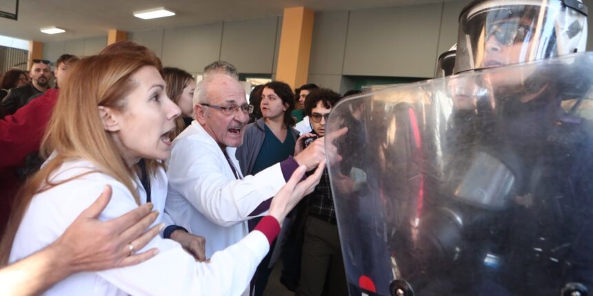Οι υγειονομικοί δέχθηκαν βίαιη επίθεση από τις αστυνομικές δυνάμεις, που δεν δίστασαν να μπουν ακόμη και μέσα στους χώρους του νοσοκομείου.