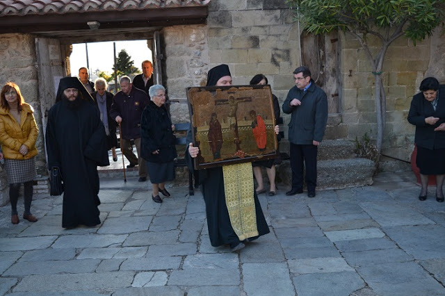 Με την δέουσα λαμπρότητα και θρησκευτική κατάνυξη έγινε η υποδοχή της ιεράς εικόνας της Σταύρωσης στην Καλαμπάκα το απόγευμα του Σαββάτου από την Ιερά Μονή Βαρλαάμ όπου φυλάσσεται.