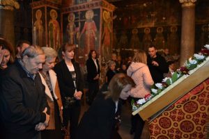 Μετά την υποδοχή που έγινε με τη δέουσα λαμπρότητα και κατάνυξη τελέστηκε ο Μέγας Εσπερινός και ο παρακλητικός κανόνας του Τιμίου Σταυρού ενώ την Κυριακή τελέστηκε ο Όρθρος , η δοξολογία και η περιφορά της εικόνας και στη συνέχεια η αρχιερατική θεία λειτουργία ενώ το απόγευμα εψάλλει ο Δ΄ Κατανυκτικός Εσπερινός και αμέσως μετά η εικόνα αναχώρησε και πάλι για την Ιερά Μονή Βαρλαάμ Μετεώρων .