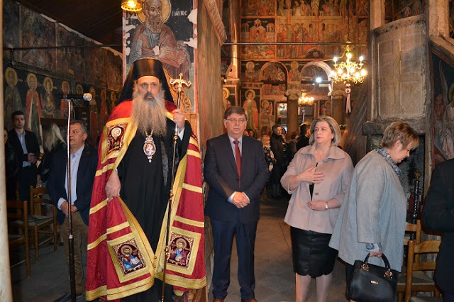 Με την δέουσα λαμπρότητα και θρησκευτική κατάνυξη έγινε η υποδοχή της ιεράς εικόνας της Σταύρωσης στην Καλαμπάκα το απόγευμα του Σαββάτου από την Ιερά Μονή Βαρλαάμ όπου φυλάσσεται.