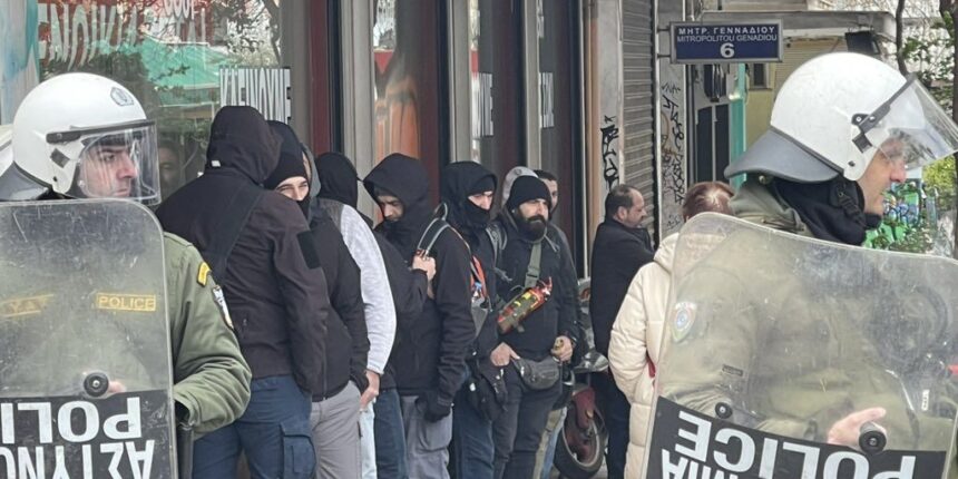 Τον γύρο του διαδικτύου κάνουν φωτογραφίες με κουκουλοφόρους να βρίσκονται πίσω από διμοιρία MAT στη Θεσσαλονίκη κατά τη διάρκεια των σημερινών απεργιακών κινητοποιήσεων για να μη συγκαλυφθεί το «έγκλημα» στα Τέμπη.