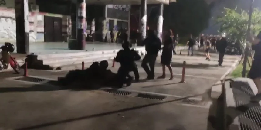 Η νύχτα κυλούσε ήρεμα μέχρι που μισή ώρα μετά τα μεσάνυχτα ξέσπασαν επεισόδια για άγνωστο λόγο, με τους αστυνομικούς να κάνουν εκτεταμένη χρήση χημικών και κρότου λάμψης.