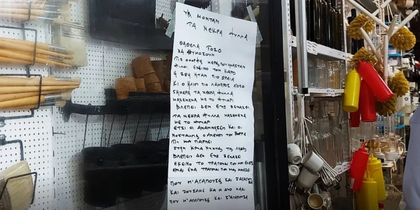 «Μοιράζομαι με τους περαστικούς ό, τι με αγγίζει πιο πολύ» αναφέρει, προσθέτοντας ότι το προηγούμενο διάστημα είχε κολλήσει στην πόρτα του καταστήματος απόσπασμα από τον Πλάτωνα, ξανά γραμμένο στο χέρι.